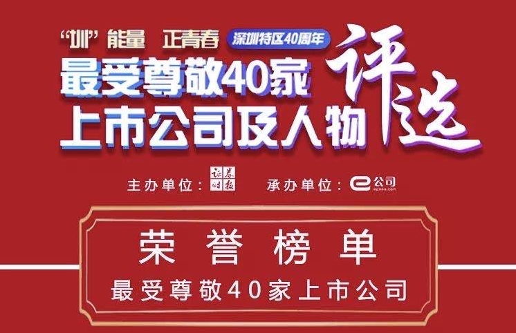 欧洲杯投注 获评深圳特区40周年“最受尊敬40家上市公司” 并入选“特立,同行”...