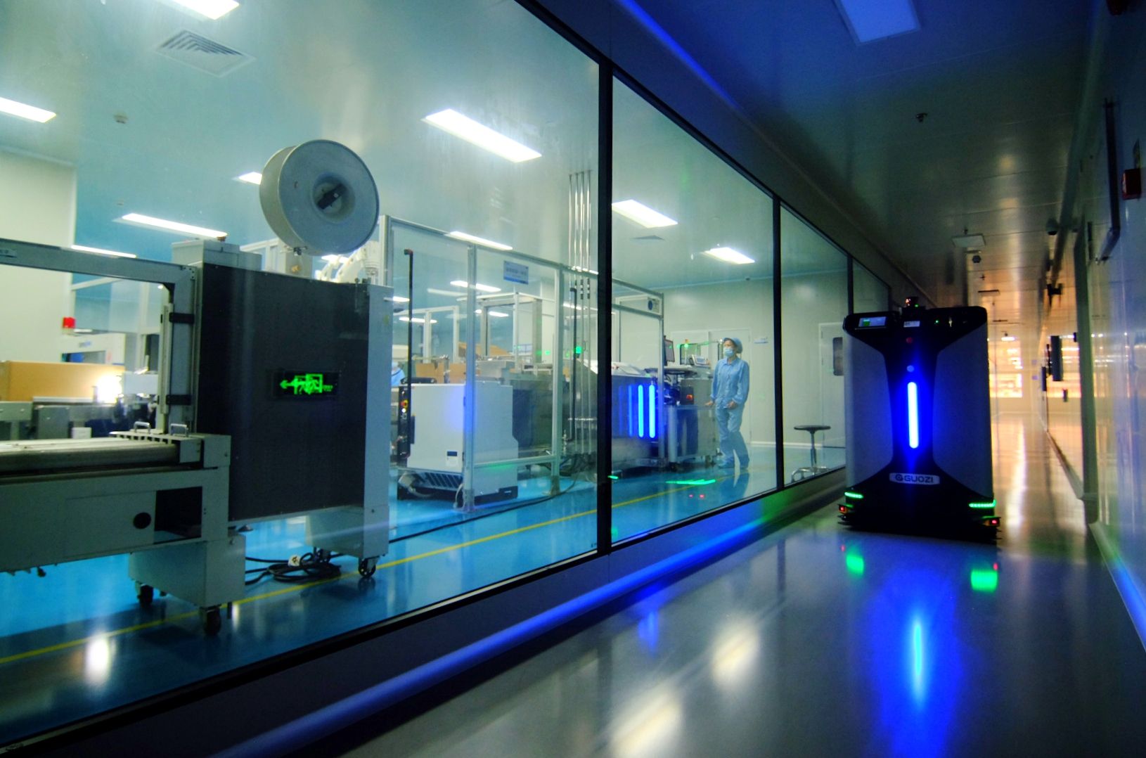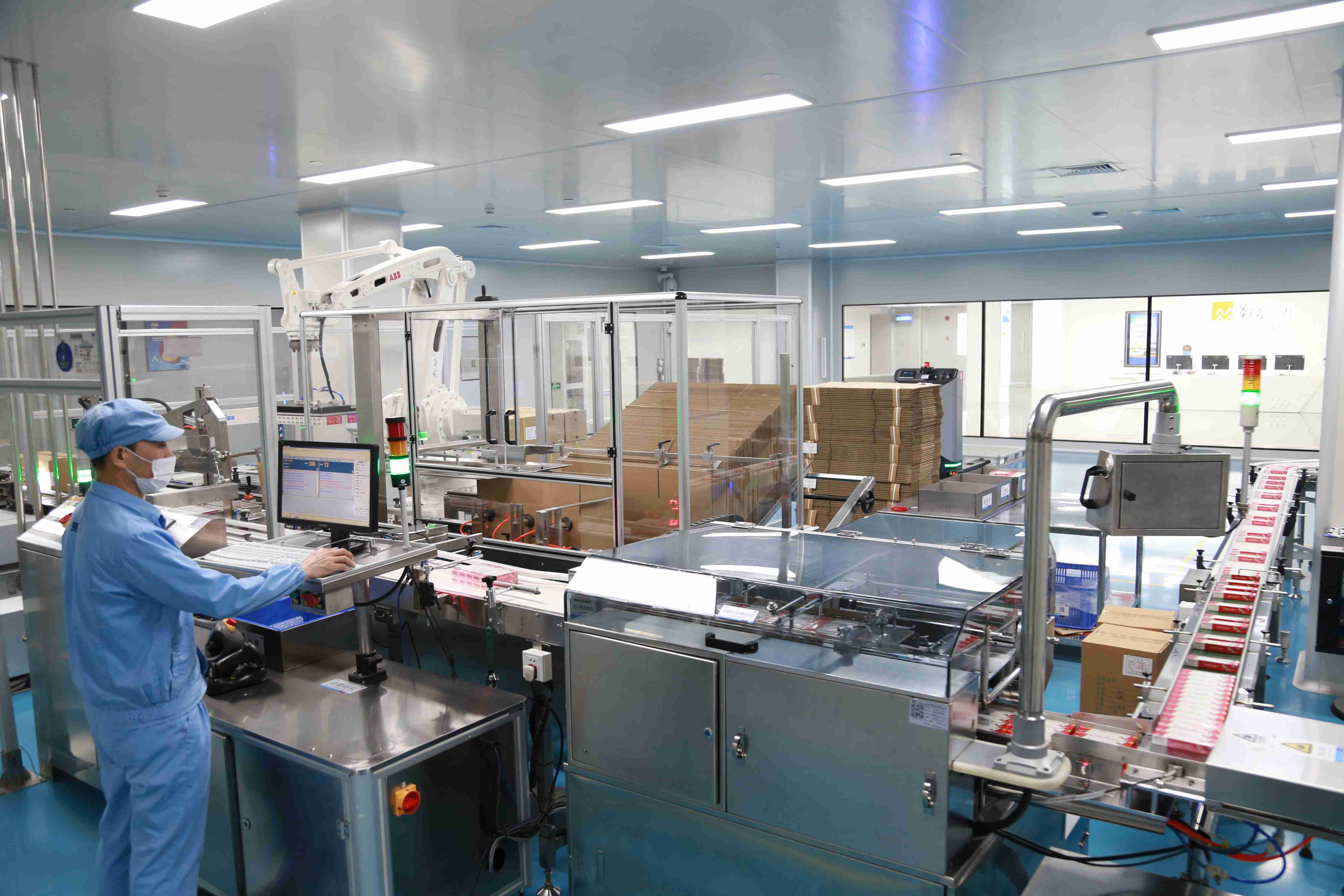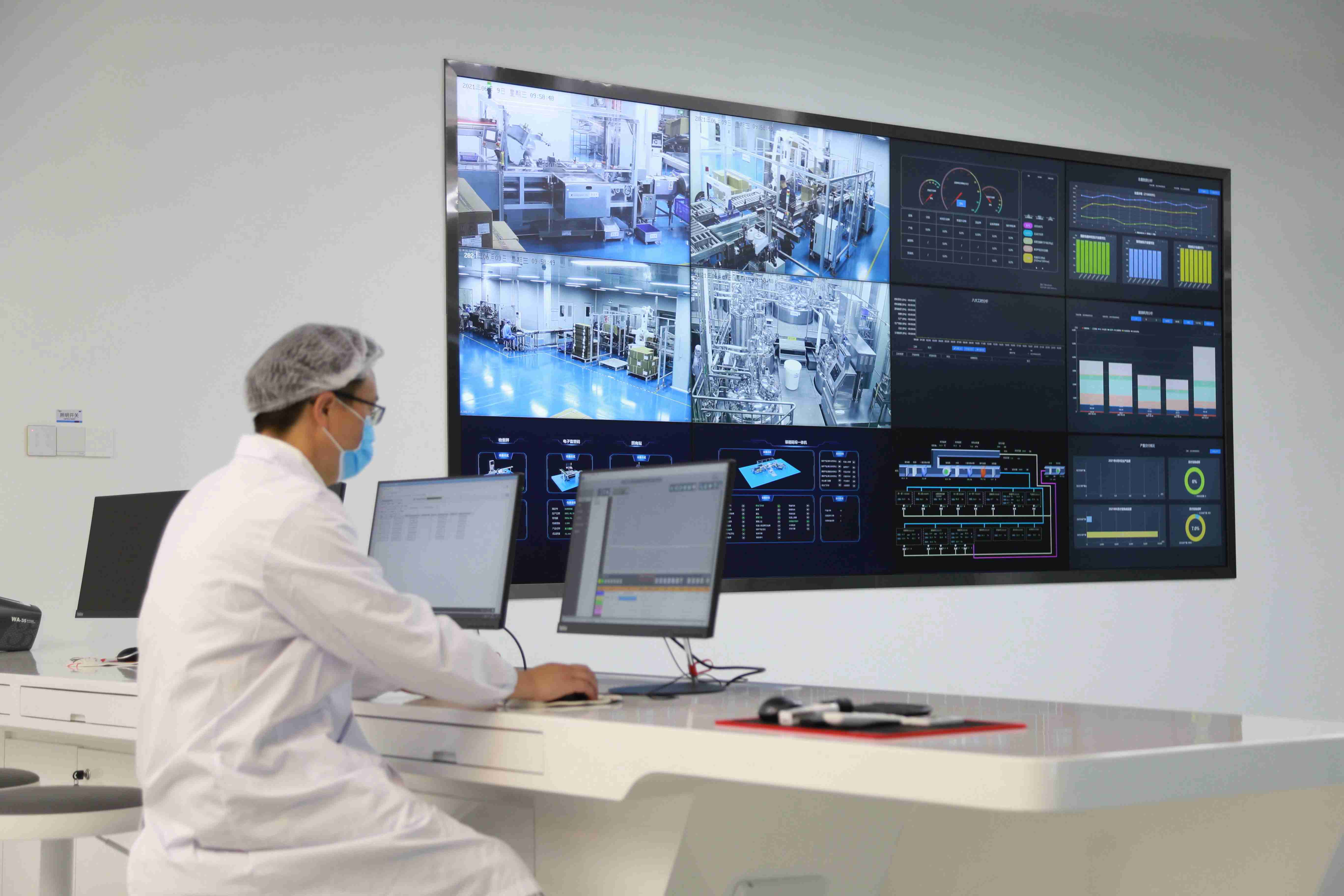 走进欧洲杯投注 观澜生产基地的智能制造中控中心,记者从监控大屏看到,自动化生产设备排列有序,高效运转;国内洁净区首条AGV运输线来回穿梭,各种原料源源不断被运回;偌大的制药车间,几乎看不到工人。