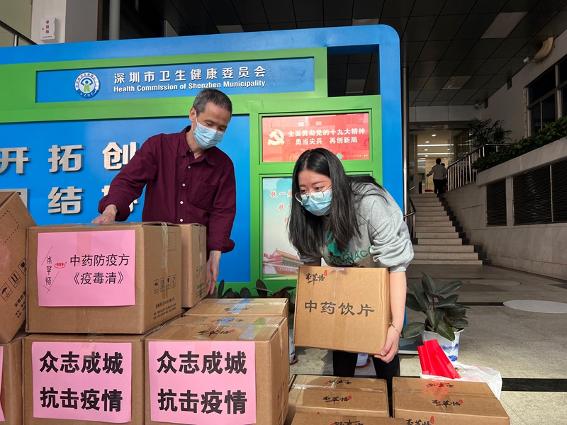 向深圳市卫健委、盐田区政府、盐田区新冠肺炎应急处理流调中心驰援一批抗疫药品,包括国药事业部的“本草悟”中药饮片防疫方3500剂共计7000包、OTC事业部的50箱999抗病毒口服液。