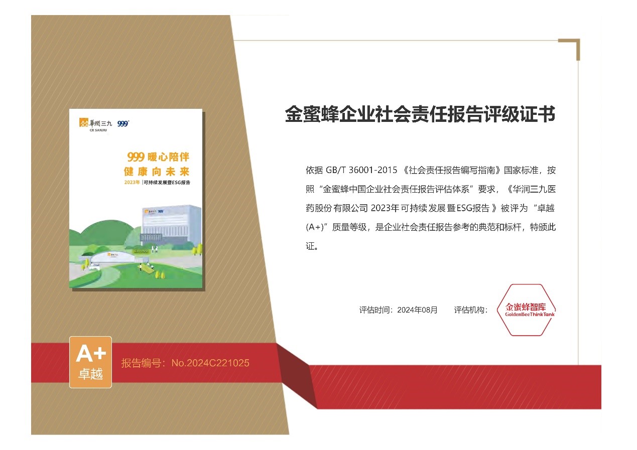《欧洲杯投注 2023年可持续发展暨ESG报告》于今年3月正式发布,以“999暖心陪伴,健康向未来”为主题,从“创新致远,凝心聚力科技发展”“诚信至臻,初心坚守企业运营”“质量致胜,匠心守护健康未来”“环境至美,恒心共建绿色家园”“伙伴至善,爱心相伴和谐共赢”等五个方面,展现了公司在可持续发展方面做出的努力和成效,以及履责理念、实践和责任担当。