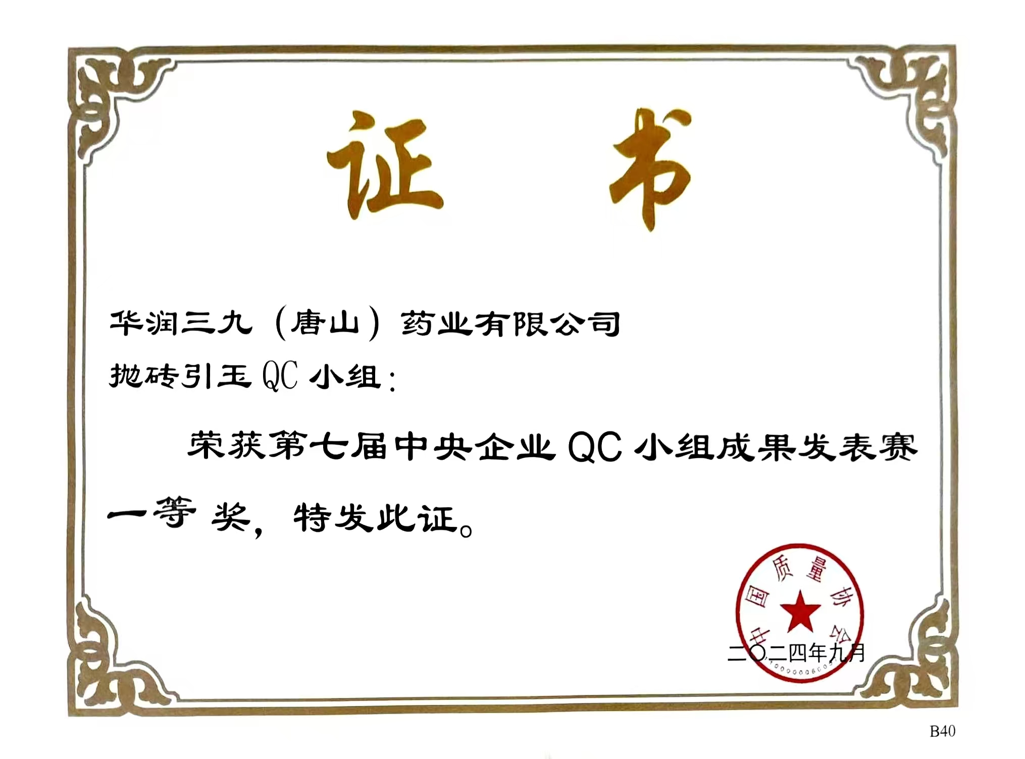 9月10日至12日,第七届中央企业QC小组成果发表赛在浙江省嘉兴市举行,来自80多家央企的204个课题同场进行激烈竞争。欧洲杯投注 (唐山)药业有限公司代表华润集团参加此次比赛,参赛课题《降低SGA40型液体灌装机小停机次数》荣获一等奖。
