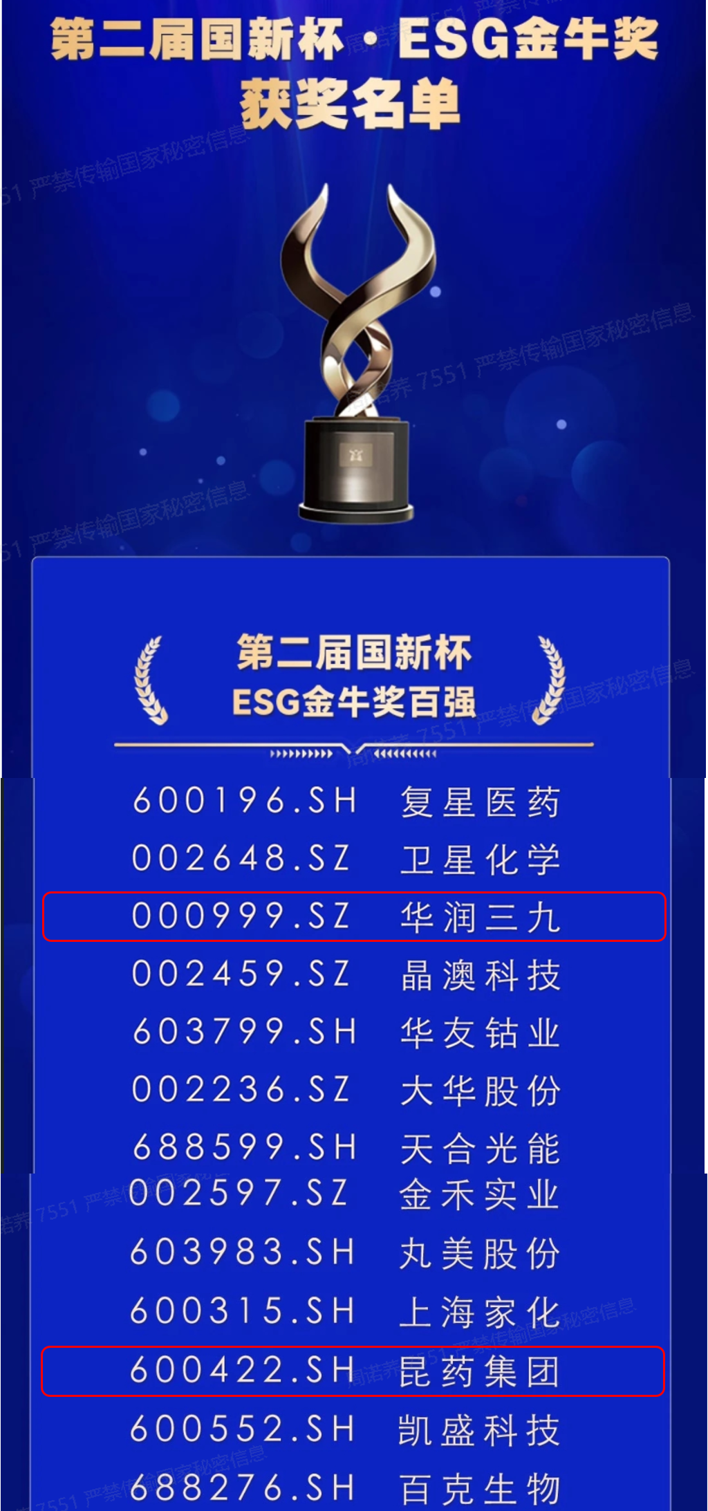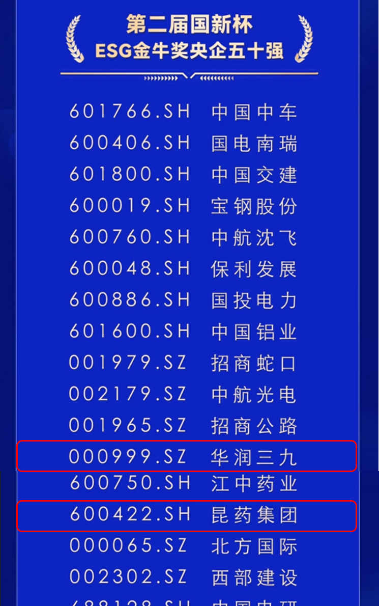 及旗下昆药集团均荣获“ESG金牛奖百强”及“ESG金牛奖央企五十强”。