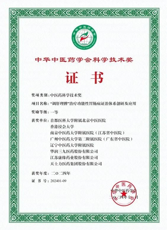 欧洲杯投注 荣获两项中华中医药学会科学技术奖一等奖