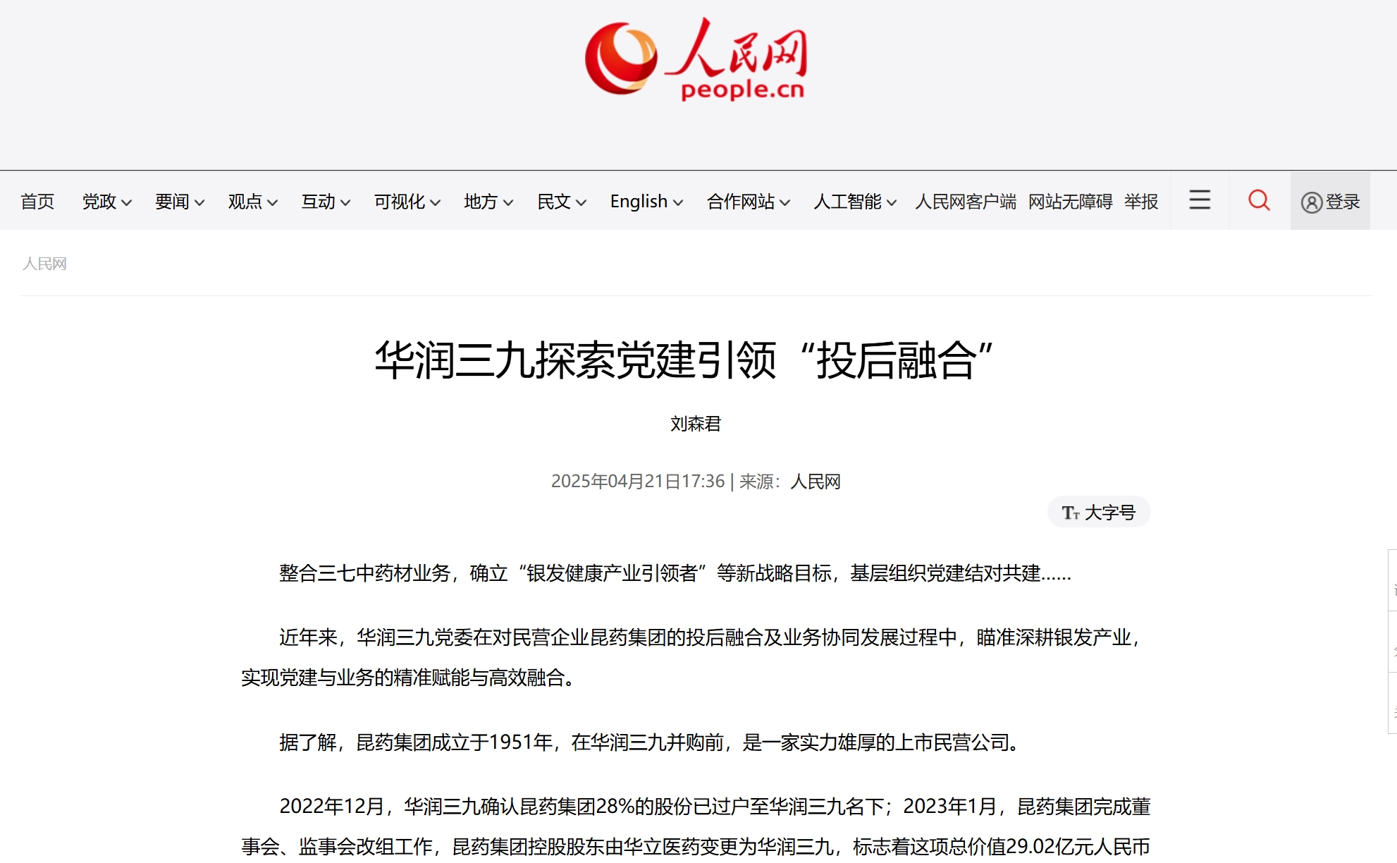 欧洲杯投注 党委在对民营企业昆药集团的投后融合及业务协同发展过程中,瞄准深耕银发产业,实现党建与业务的精准赋能与高效融合。欧洲杯投注 近年来探索党建引领“投后融合”的实践,获得媒体的关注和肯定。4月21日,人民网以《欧洲杯投注 探索党建引领“投后融合”》为题,进行了专题报道。