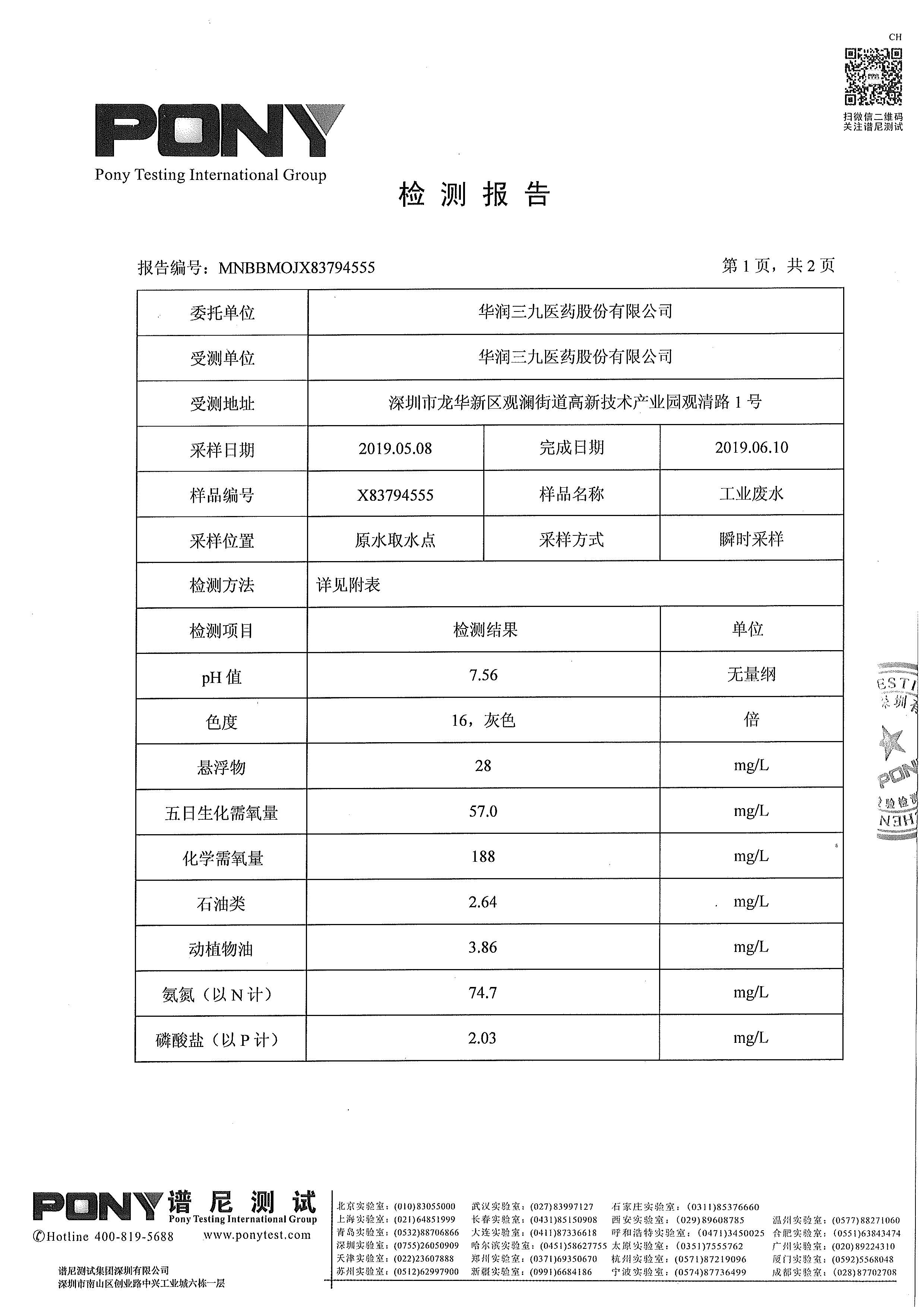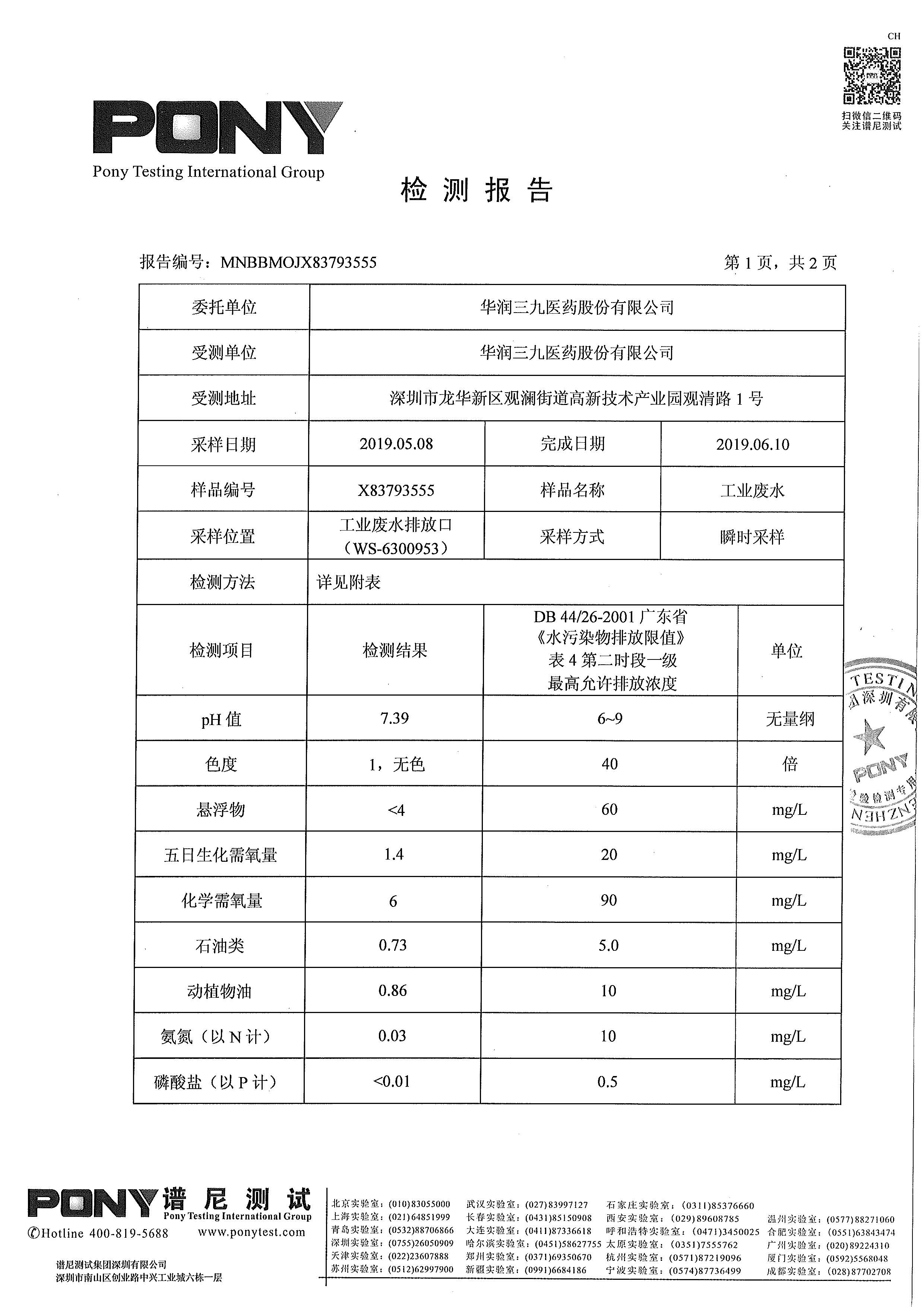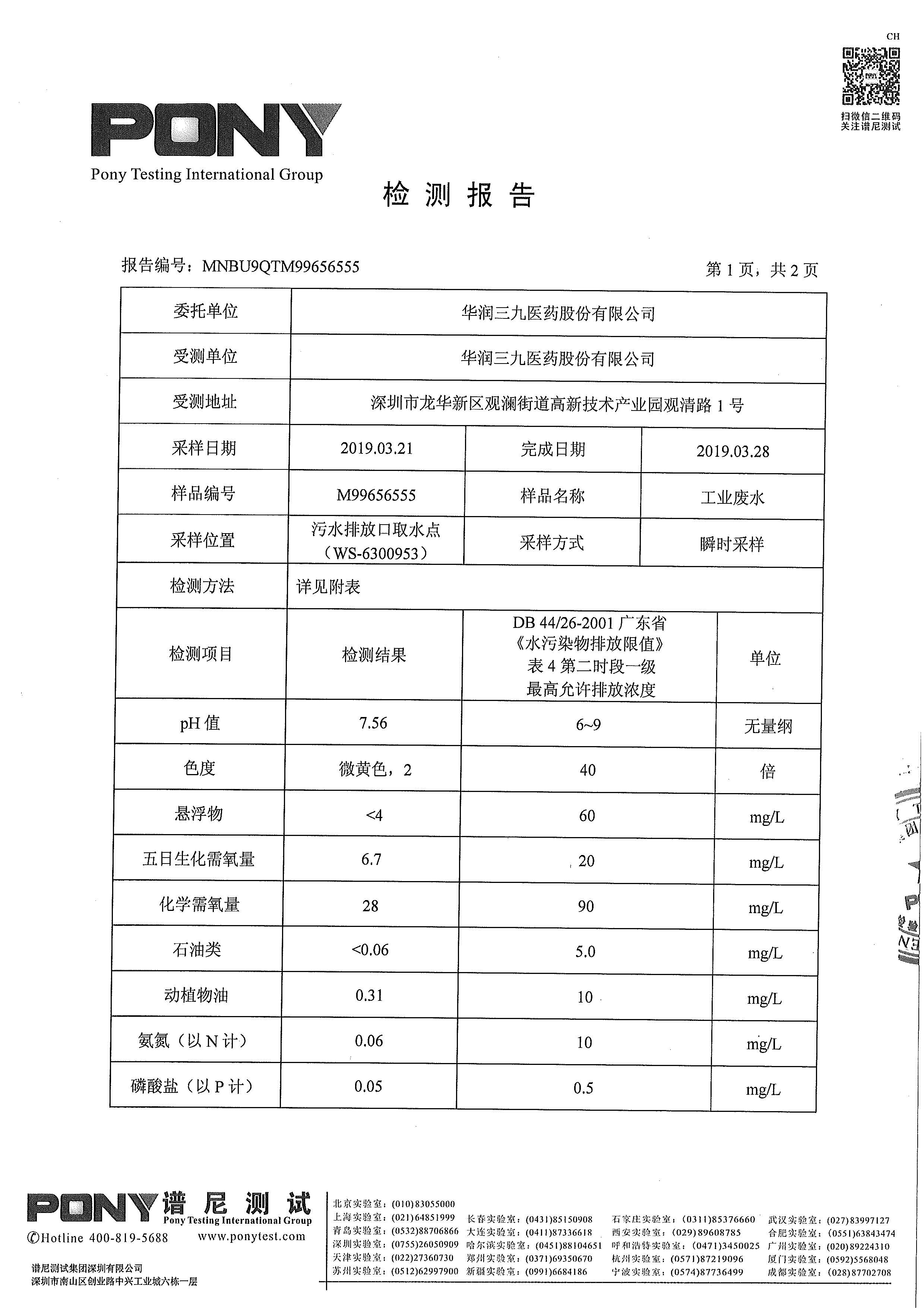 欧洲杯投注 废水检测报告(2019年3月)