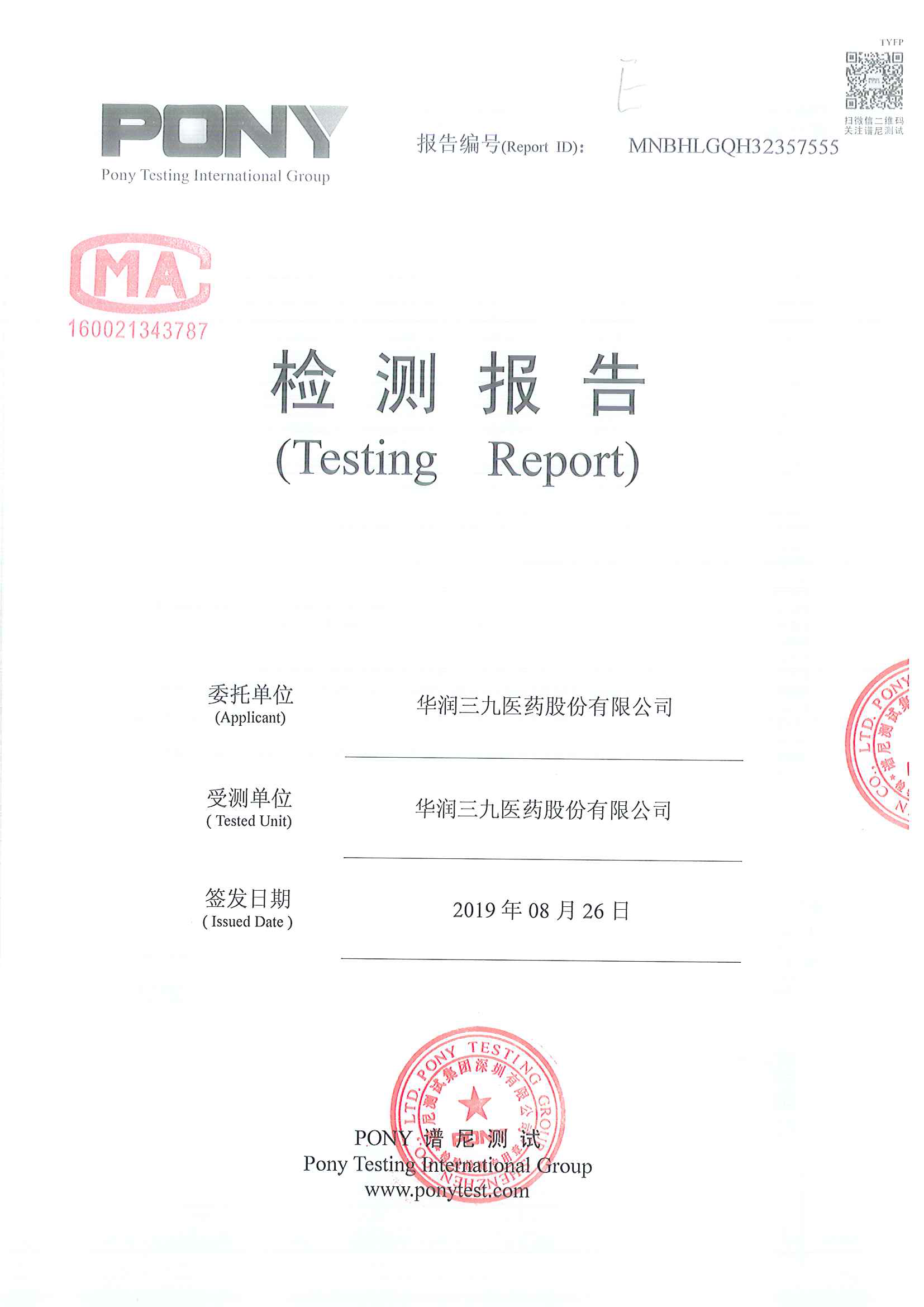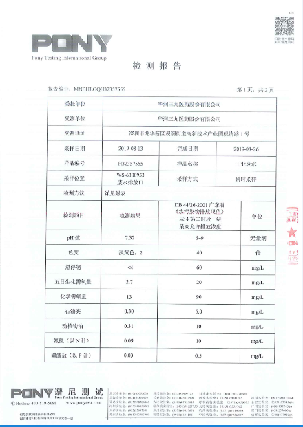 欧洲杯投注 废水检测报告(2019年8月)