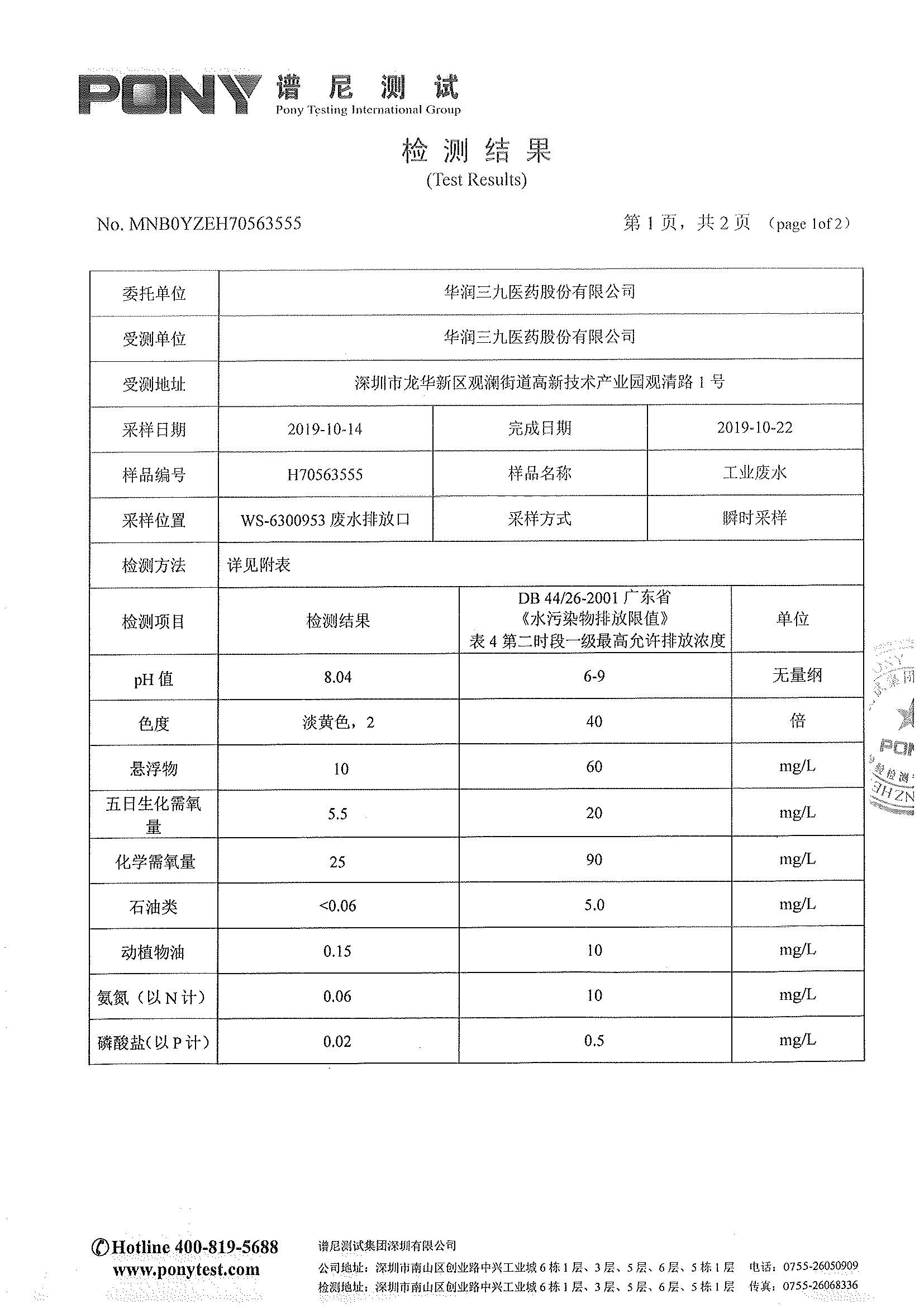 欧洲杯投注 废水检测报告(2019年10月)