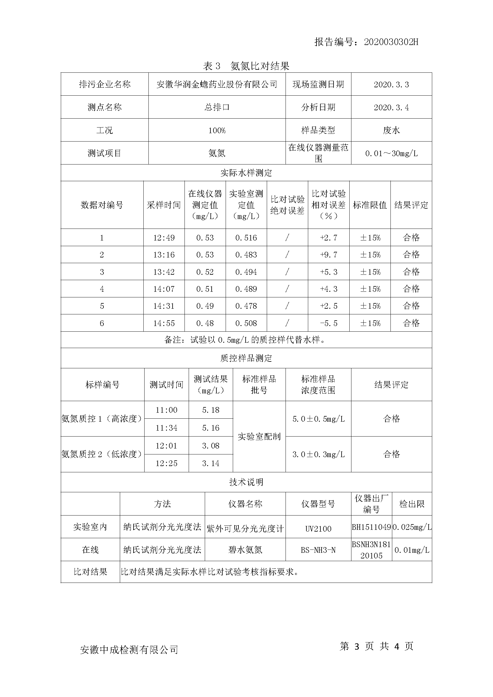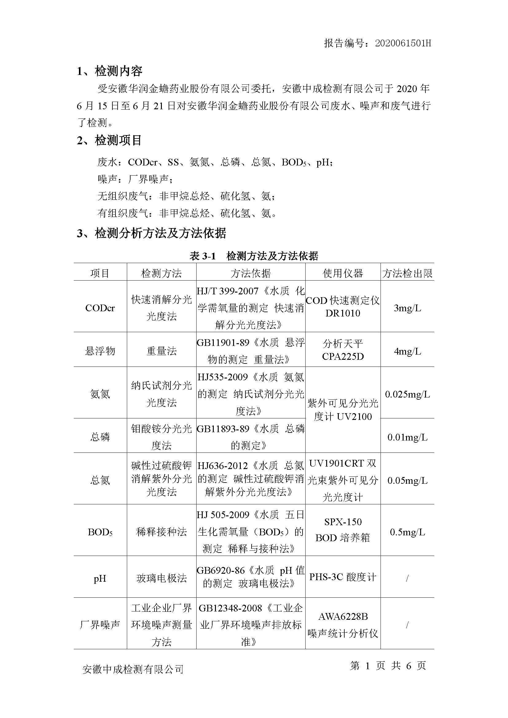 华润金蟾污染物排放检测报告(2020年二季度)