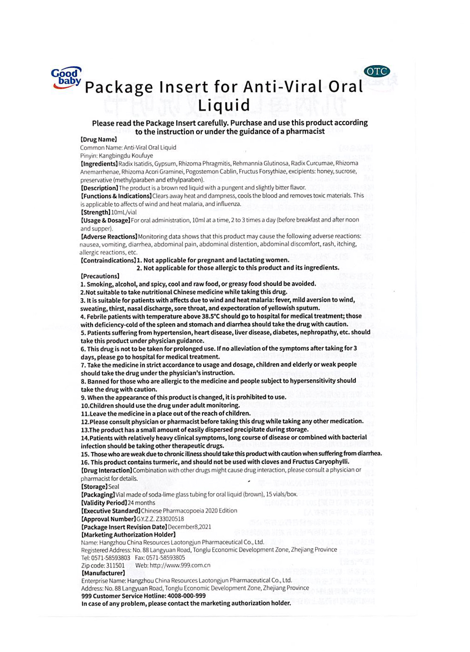 本品功能主治为清热祛湿,凉血解毒。用于风热感冒、流感。
