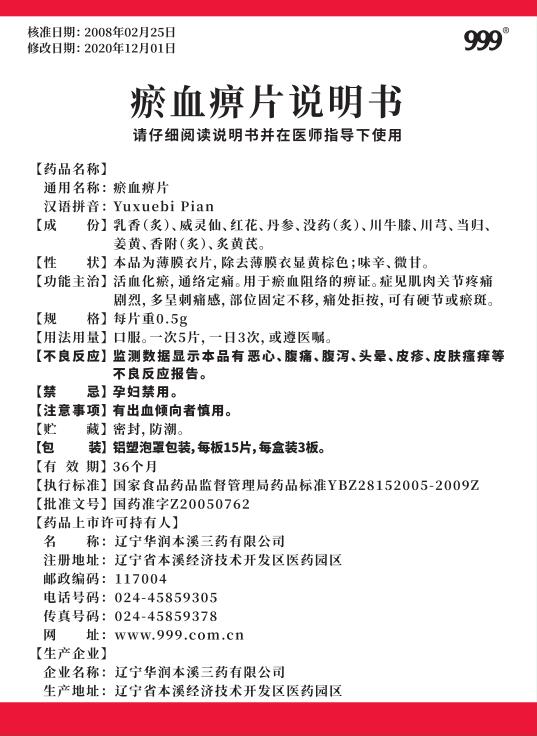活血化瘀,通络定痛。用于瘀血阻络的痹证。症见肌肉关节疼痛剧烈,多呈刺痛感,部位固定不移,痛处拒按,可有硬节或瘀斑。