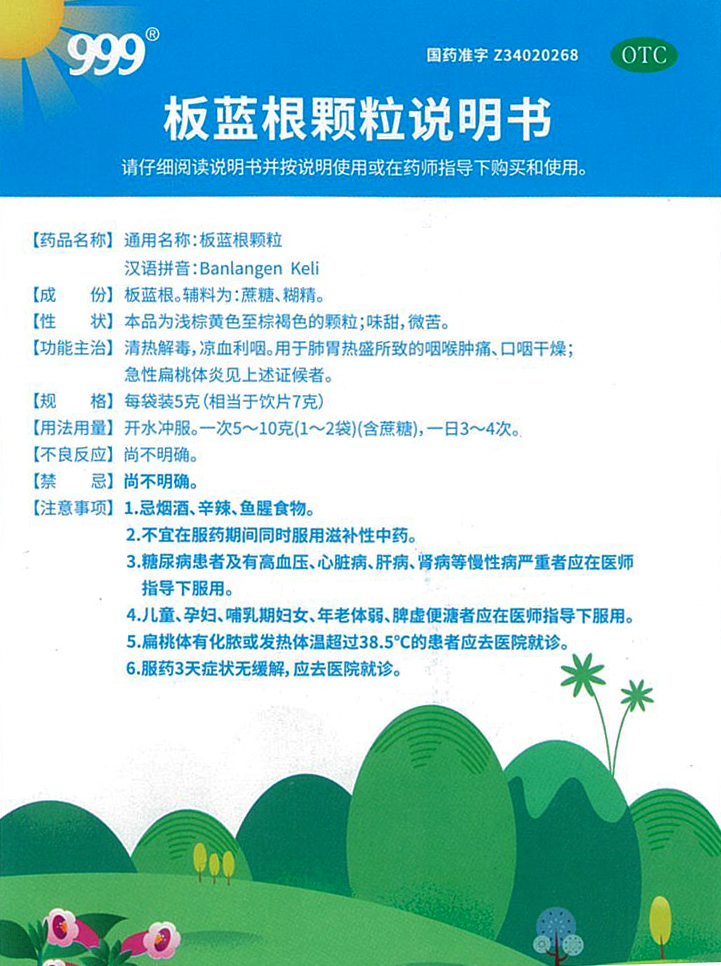 功能主治:清热解毒,凉血利咽。用于肺胃热盛所致的咽喉肿痛、口咽干燥;急性扁桃体炎见上述证候者。