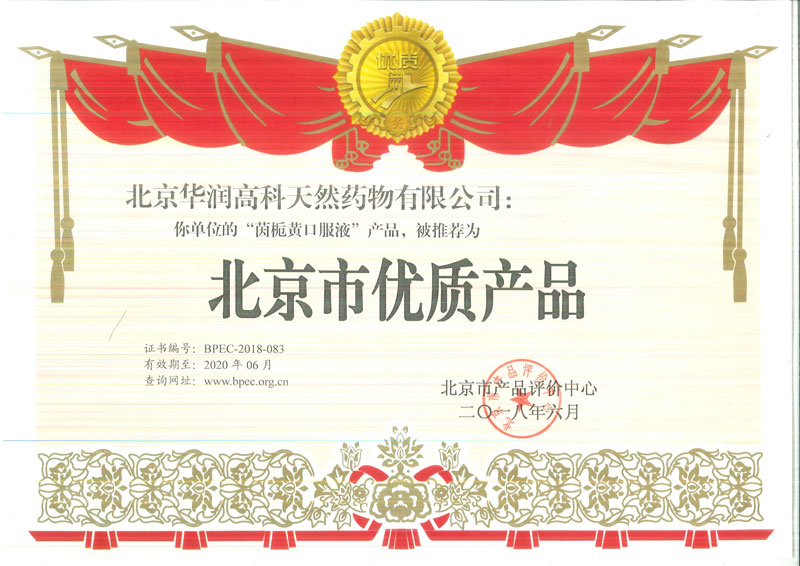 近日,华润高科茵栀黄口服液、舒血宁注射液、银杏叶酊等三个药品被北京市产品评价中心推荐为“北京市优质产品”。