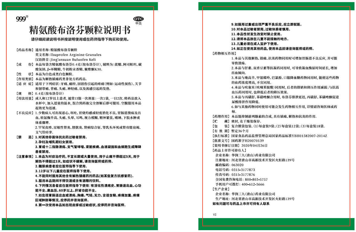 精氨酸布洛芬颗粒说明书(9袋、12袋、18袋)v3