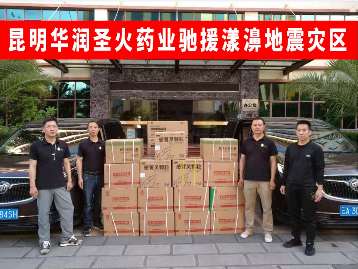 22日,华润圣火药业筹集并采购到灾区急需的感冒药、肠胃药、皮肤药等常用药品,消杀用品,口罩等物资,共计价值10.1万元,并于23日送抵云南省大理州漾濞县中医医院。