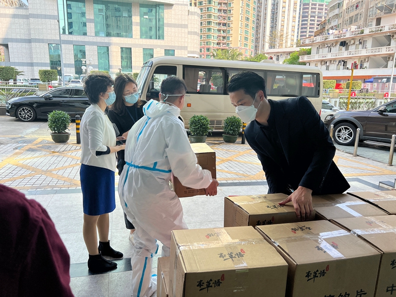 向深圳市卫健委、盐田区政府、盐田区新冠肺炎应急处理流调中心驰援一批抗疫药品,包括国药事业部的“本草悟”中药饮片防疫方3500剂共计7000包、OTC事业部的50箱999抗病毒口服液。