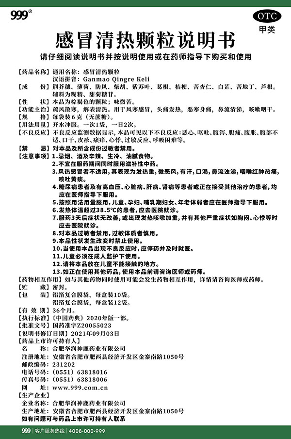 疏风散寒,解表清热。用于风寒感冒,头痛发热,恶寒身痛,鼻流清涕,咳嗽咽干。
