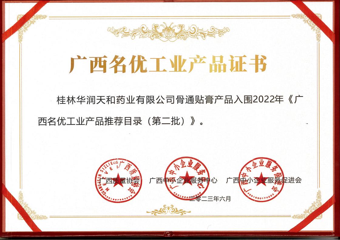 华润天和“骨通贴膏”入选《广西名优工业产品推荐目录》
