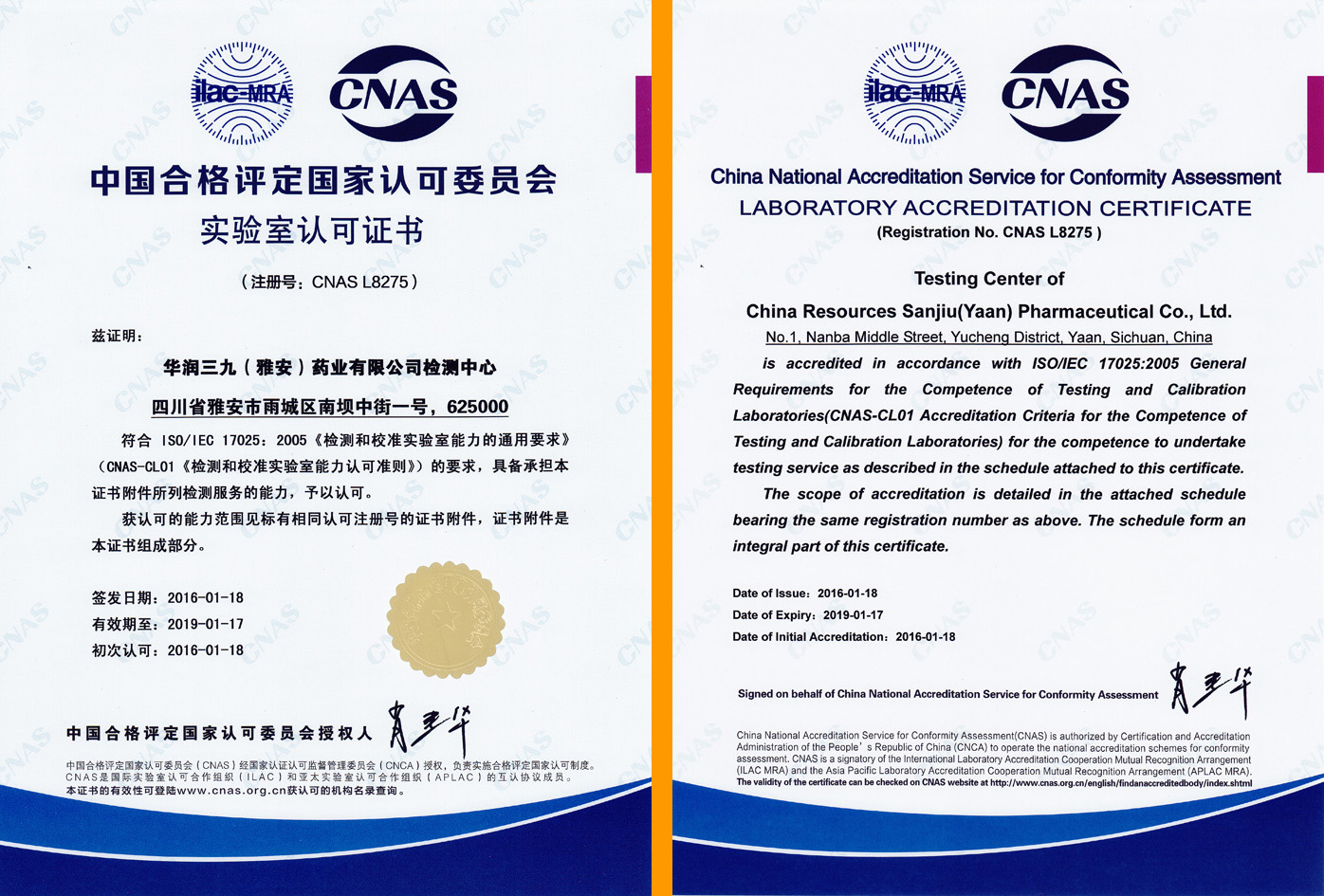 新年伊始,中国合格评定国家认可委员会(简称:CNAS)正式批准欧洲杯投注 (雅安)有限公司检测中心通过实验室认可,列入获认可检测和校准实验室名录,认可证书(注册编号:L8275)已于2月4日寄达欧洲杯投注 (雅安)。