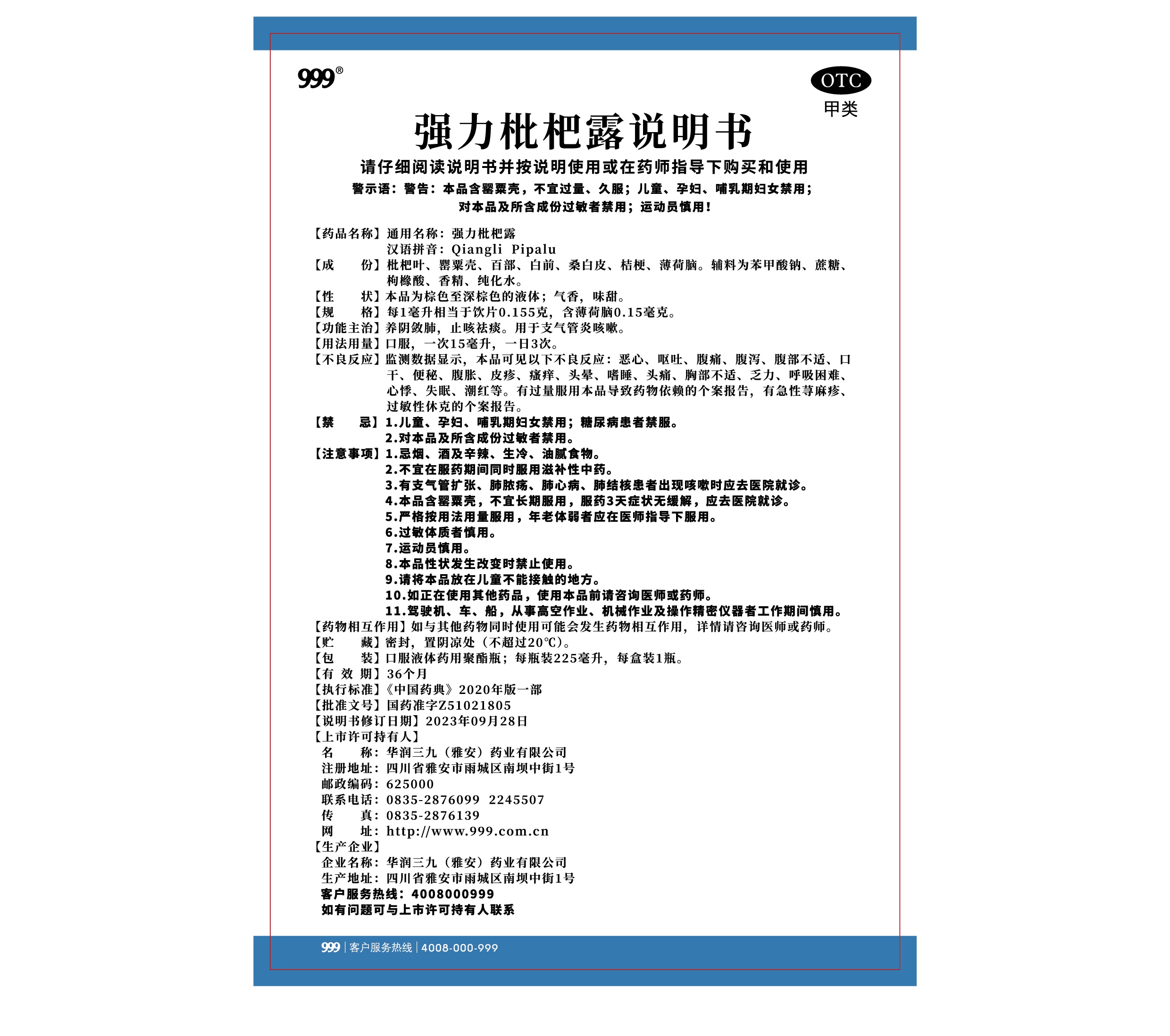 强力枇杷露225ml